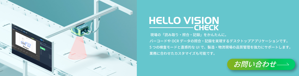 HELLO VISION CHECKはインクジェット・プリンタ(IJP)や宛名プリンタなど、ダンボール・はがき・封筒などの印刷内容の全数検査ソリューションです。