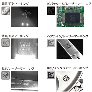 金属面などにドットピンマーキングやレーザーマーキングで印字されたDPM/2次元コードにおいて有効です。