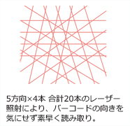 抜群の読み取り性能 20本のレーザーライン(5方向×4ライン)